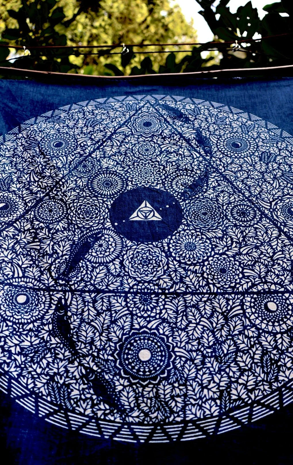 BINGATA and KATAZOME both start with making a hand-cut stencil. Placing the stencil on cloth, I make a resist using rice paste, and hand-paint each work using natural pigments or by traditional indigo dye processes. My SHIBORI work is a smaller part of my presentation. These are organic hemp sarongs dyed with indigo, their white patterns are a "hand sew and cut away" dye resist process.” - Kazue O Young
